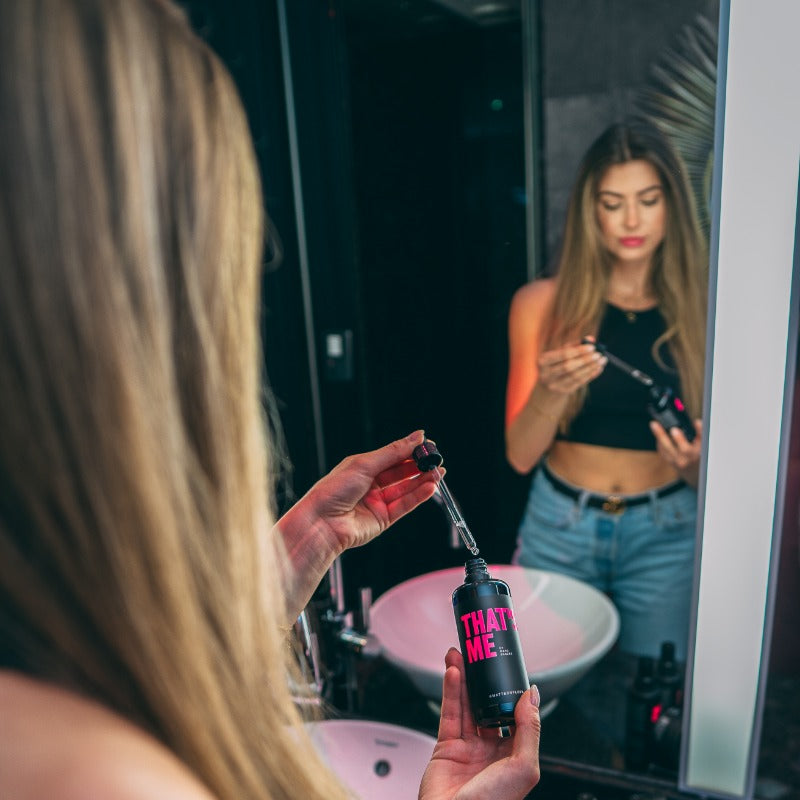 Das That’s ME Haarserum nach der Haarwäsche in das handtuchtrockene Haar mit der Pipette scheitelweise auf die Kopfhaut auftragen und sanft mit kreisenden Bewegungen in die Kopfhaut einmassieren - das sorgt für eine gleichmäßige Verteilung und eine gute Durchblutung. Anschließend das Haar wie gewohnt stylen, am besten mit dem That’s ME Haarverdigger. Verwende das Haarserum mindestens 2-3mal die Woche über einen Zeitraum von mindestens 3 Monaten, um die magische Wirkung des That’s ME Haarserum zu erleben.